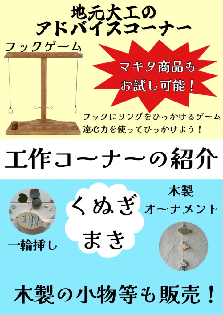 小学生大歓迎!工作コーナー設置!