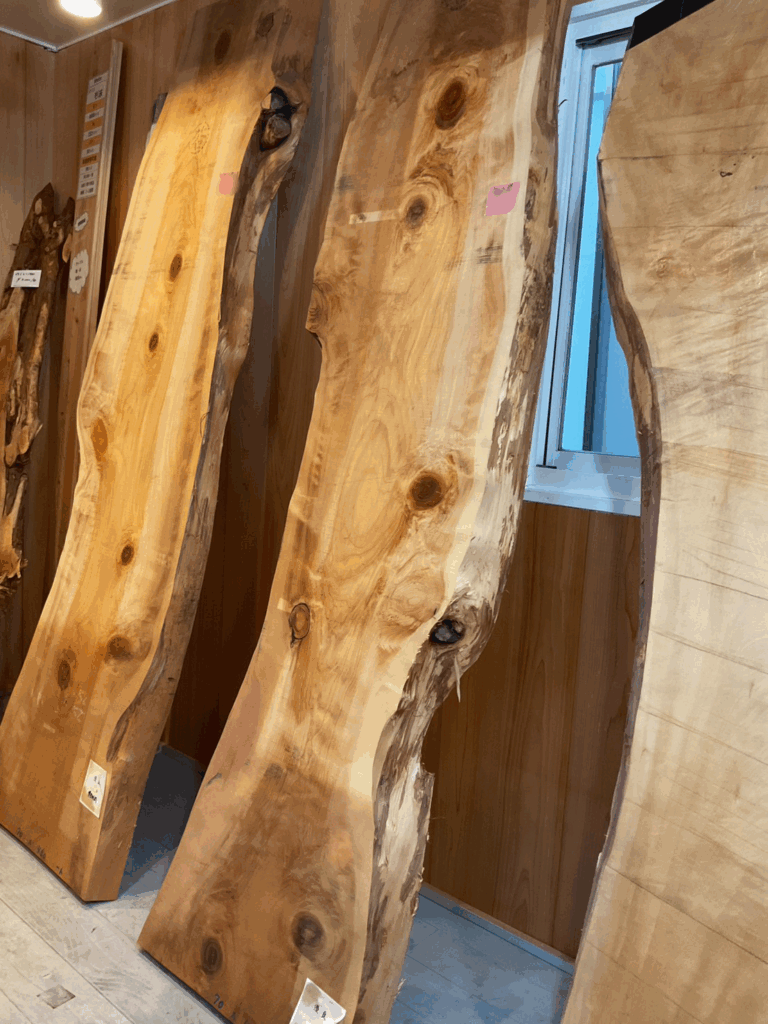 テーブルにちょうどいいサイズ感の一枚板を数枚ご購入していただきました。